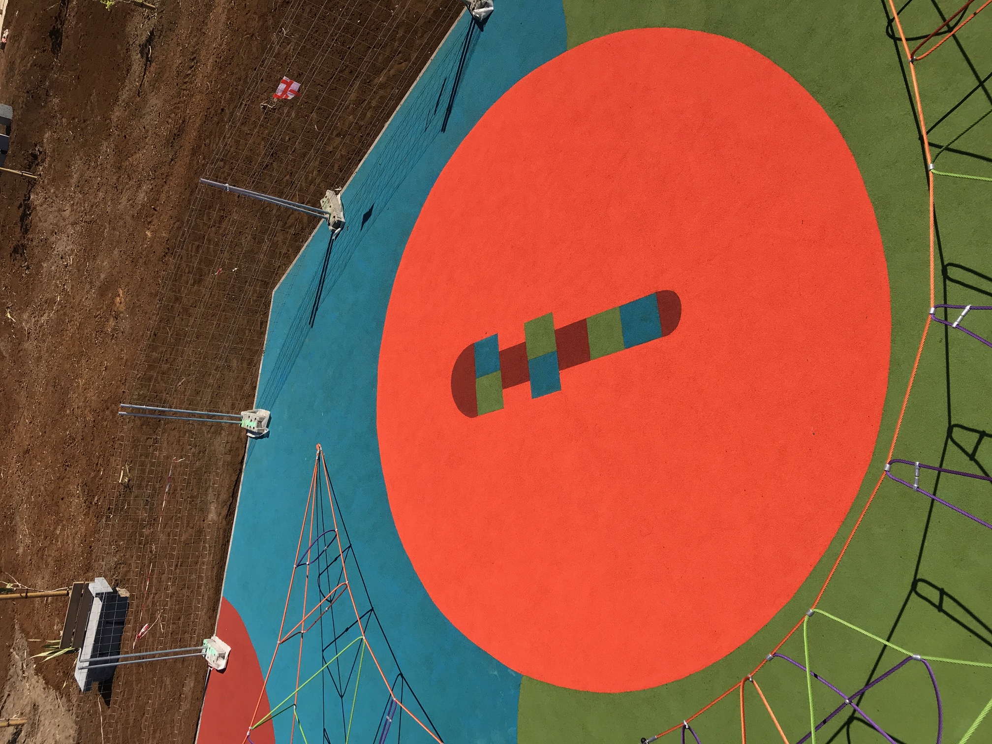 Les sols amortissants sont principalement destinés à fournir les zones de sécurité souples sous les jeux et équipements sportifs ayant des hauteurs de chute. Ce matériau est composé de deux couches : une couche en SBR (granulat de pneu recyclé, fabriqué localement à la Réunion chez notre partenaire SOLYVAL) et une couche superficielle donnant l’aspect coloré esthétique composé de granulats d’EPDM. L’ensemble est mélangé à une résine polyuréthane afin de lier les granulats de caoutchouc. Tous les coloris et motifs sont possibles selon les souhaits du client et le talent créatif de nos compagnons. Les sols amortissant sont conformes aux normes NF EN 1177.